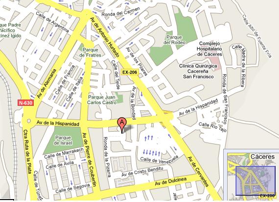 Estamos situados en la calle Méjico, junto a la Avenida de la Hispanidad, en Cáceres.